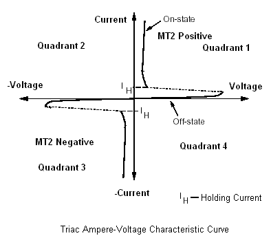 The holding current is the minimum current required to hold it on. As with SCR, the control of large load current can be triggered by miliampere gate current, hence making it a convenient switch for AC circuits. It can also do phase control where a certain percentage of power from the mains is supplied to the load.